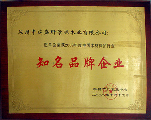 2013年在《中國木材保護(hù)工業(yè)協(xié)會》的組織下,我公司榮獲本年度防腐木企業(yè)評選《防腐木材企業(yè)十強(qiáng)》稱號。